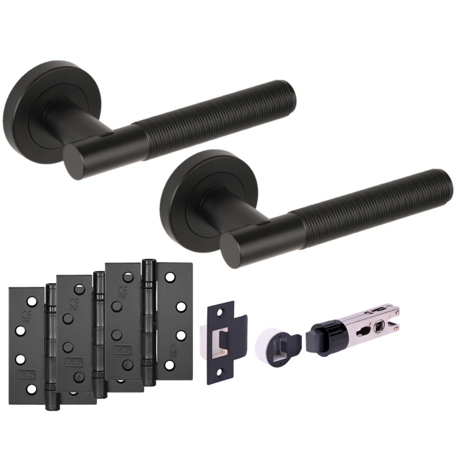 A complete internal passage door pack supplied with 102mm fire-rated hinges and an innovative bullet latch system. Finished in contemporary matt black and designed for clean, efficient installation on internal fire doors. Available with fast UK-wide delivery from our Halifax base.
